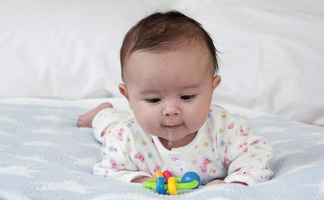 俯臥抬頭:兩次喂奶中間,讓小兒俯臥,撫摩小兒背部,用嘩鈴棒逗引小兒抬頭並左右側轉動。