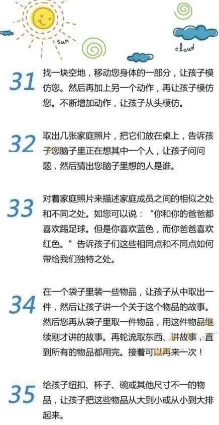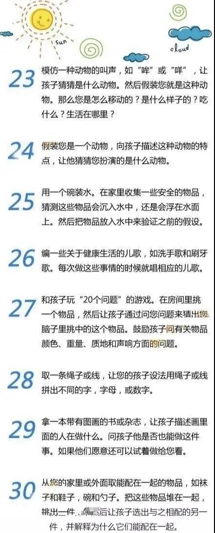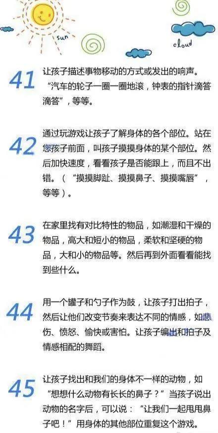 長過程中的“營養催化劑”,高質量陪伴,下麵的親子小遊戲耗時不長,又非常有趣,可以幫助家長和寶寶建立親密的親子關係哦!整理了50個簡單有趣的小遊戲,快收藏!