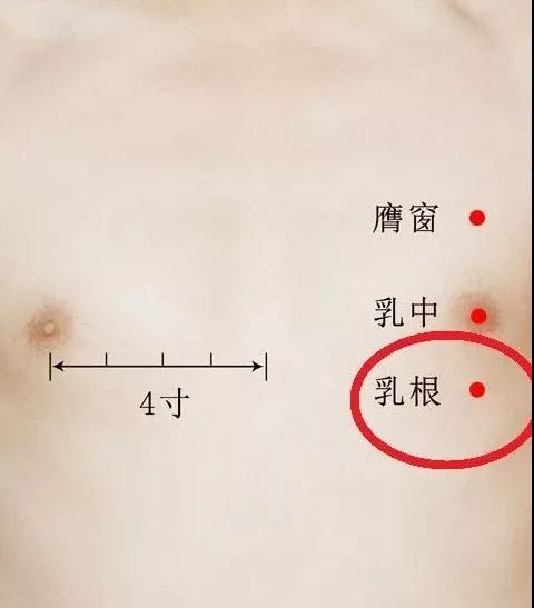 乳房周圍有三個穴位,是精氣所過之處,輕輕地點、按、揉可以使經氣更加地疏通,緩解脹痛。