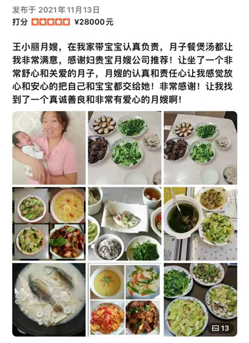 4.營養配餐:合理安排產婦飲食,為產婦製作營養餐。