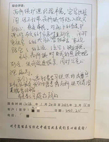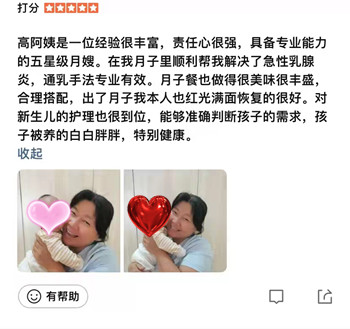 來自月嫂日誌客戶真實好評